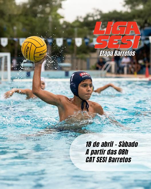 Equipes de polo aquático do estado de São Paulo estarão em Barretos, no dia 18 de abril, para disputar uma etapa da Liga SESI de Polo Aquático, que será realizada no Centro de Atividades do SESI - Via da Comitivas - Rua Dr. Roberto Cardoso Alves, 800.